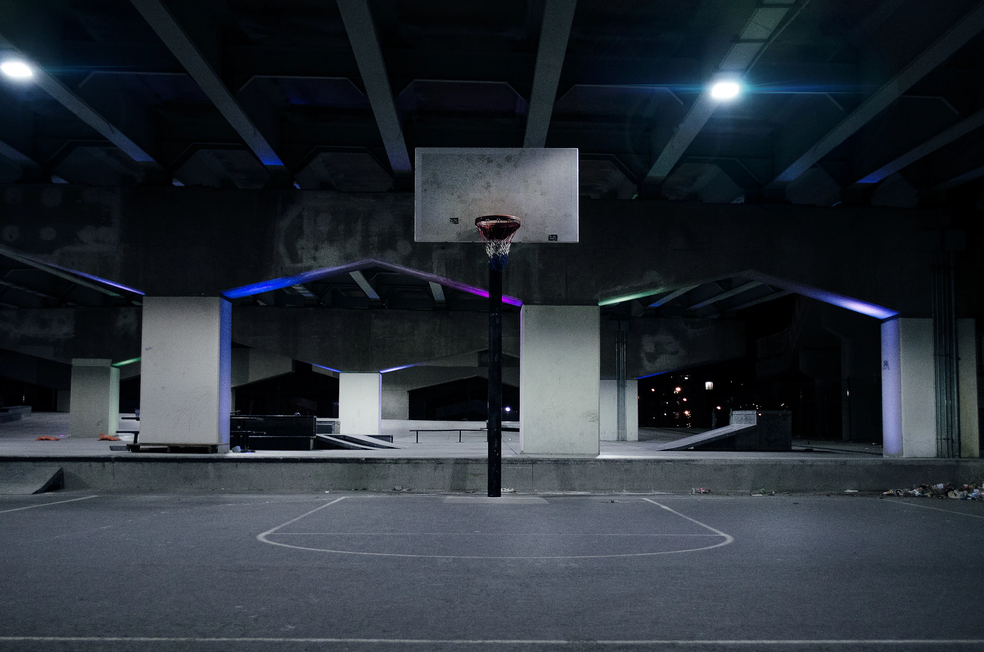 采用专业实木地板、标准篮筐及先进的训练辅助器材。